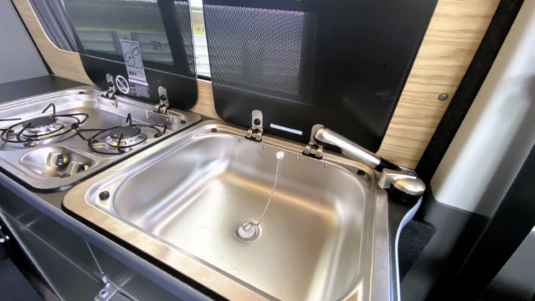 Und er ist ein echter Campingbus. 4 Schlafplätze, 5 Sitzplätze, 12V und 230V Stromversorgung, Kühlbox und Gaskocher, Gas Wohnraum- und Standheizung, viel Stauraum rundum und Platz für 4 Personen am Tisch.
