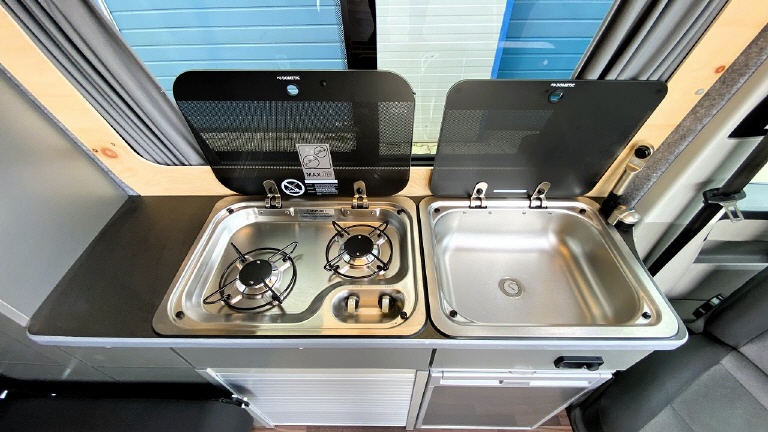 Und er ist ein echter Campingbus. 4 Schlafplätze, 5 Sitzplätze, 12V und 230V Stromversorgung, Kühlbox und Gaskocher, Gas Wohnraum- und Standheizung, viel Stauraum und Platz für 4 Personen am Tisch. Markise und Fahrradträger sind schon dabei, die Solaranlage erhöht die Autarkie - Du bleibst lange versorgt und unabhängig.