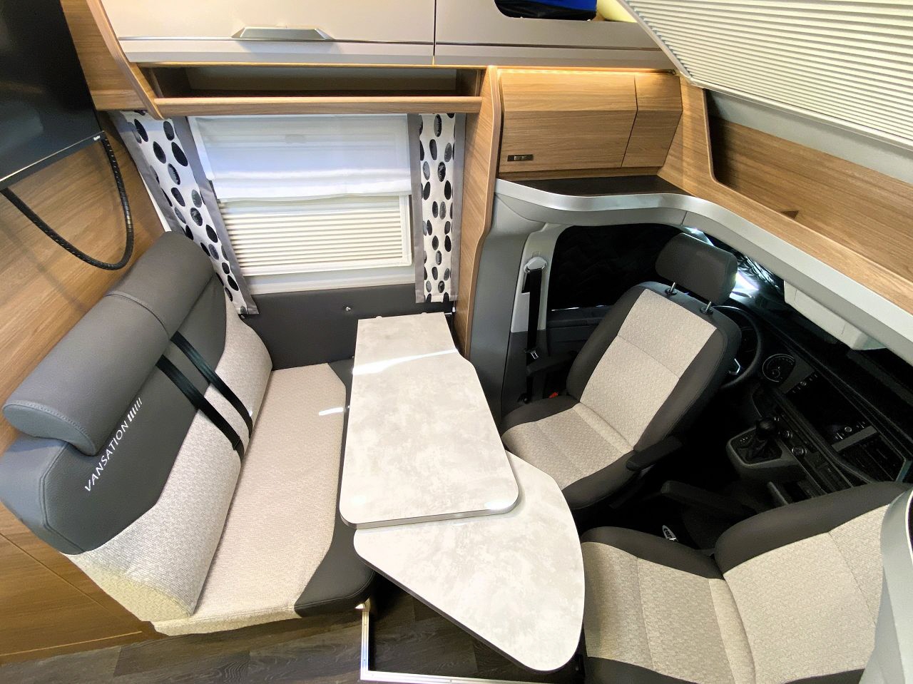 Thermomatten für das Fahrerhaus (magnetisch), alle Fenster und Dachluken im Wohnraum mit Plisseé Verdunkelung und Insektenschutz,
